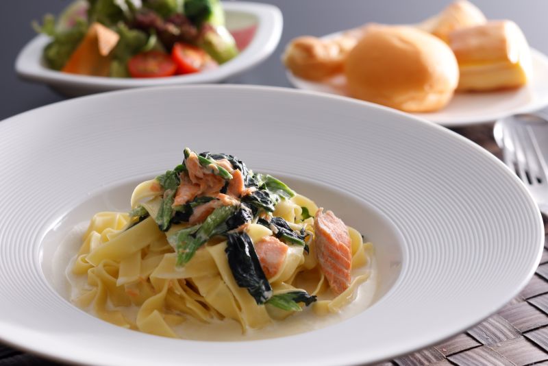 当プランをご予約いただいたお客様はチェックアウトが12時までとなり、チェックアウト後に ホテル2階にあるレストラン「ALLY’s LONG VACATION-KOBE」にて「選べるパスタ&ハーフブッフェランチ」をお楽しみいただけます。お部屋でのんびり過ごした後に、美味しいランチで旅の締めくくりができるホテルステイはいかがでしょうか。