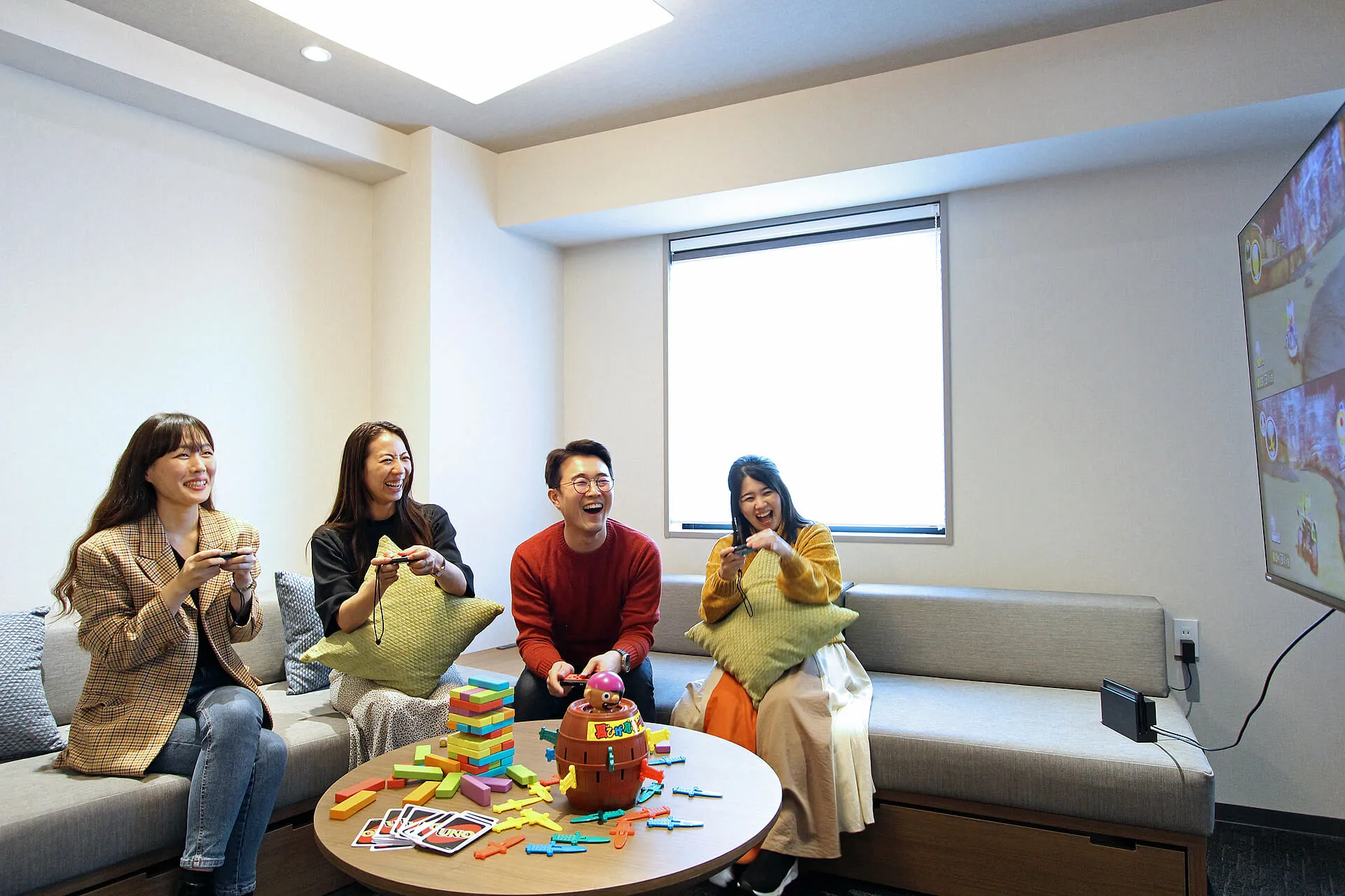 ゆったりとくつろげるソファーを備え、グループでも気兼ねなくお過ごしいただける客室。