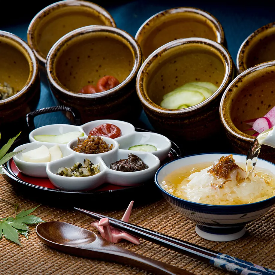 充実の和洋ビュッフェには、おばんざいや京都ならではの漬物と一緒に楽しめるお茶漬けコーナーもございます。西利の京漬物「すぐき」や「しば漬」などの数種類のお漬物をご用意。お好きなお漬物と一緒にお好きなだけお楽しみください。