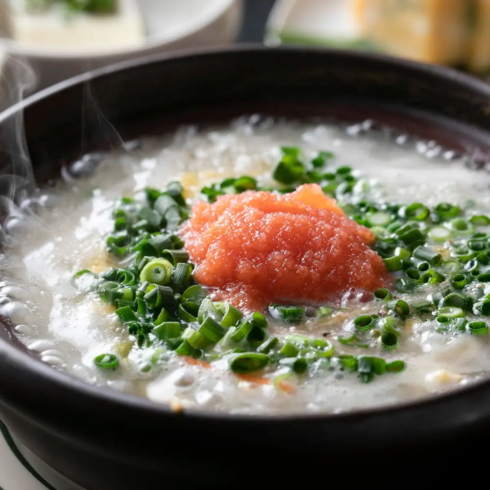 博多福太郎の明太子を使用したオリジナルの雑炊!特製の出汁と明太子の塩味が朝から食欲を湧き立てます!