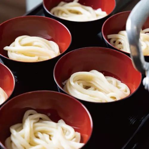 高松といえば讃岐。讃岐うどんがセルフコーナーに登場!こしがあって食べやすい地元の味をお楽しみください。