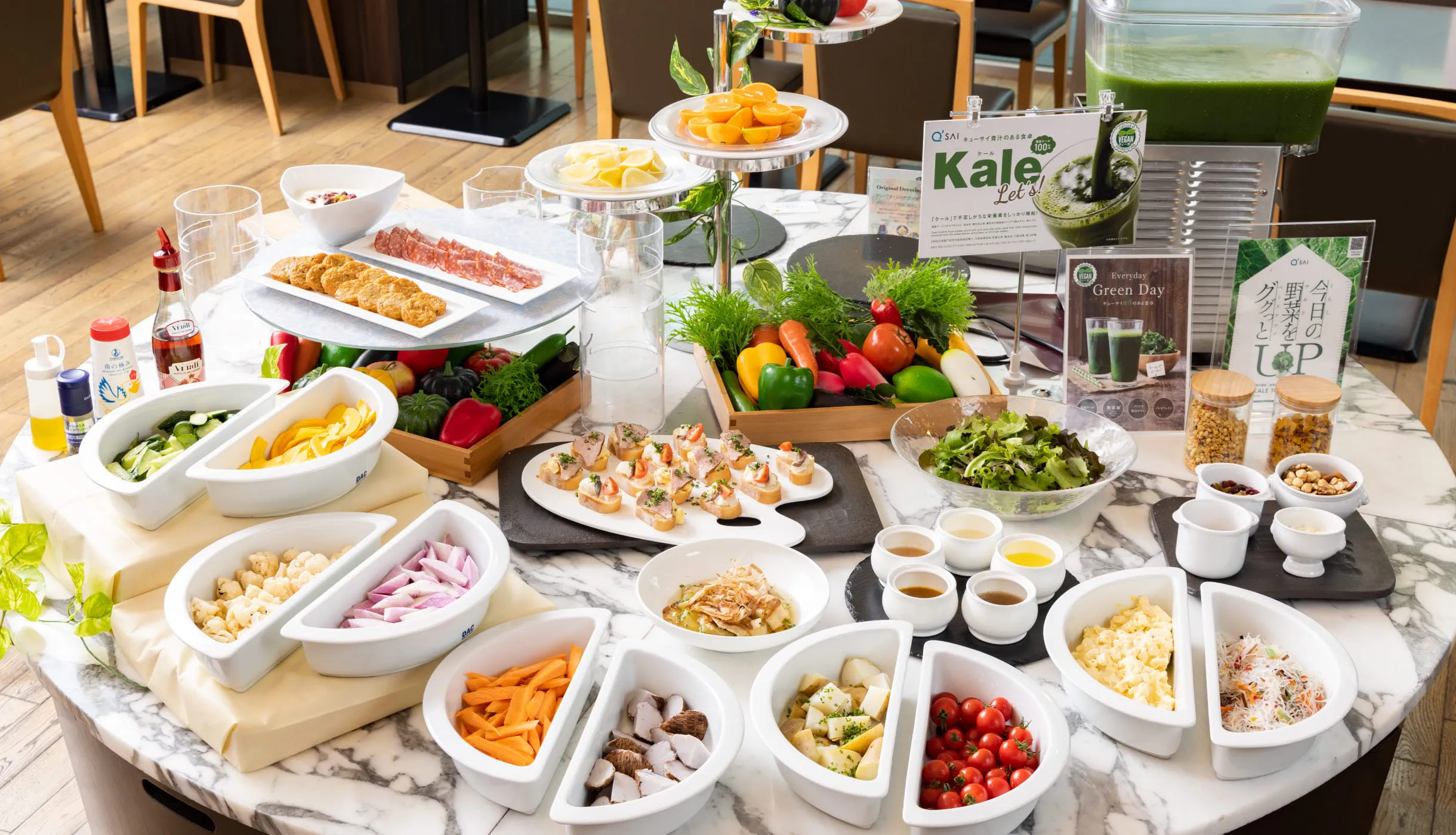 サラダコーナーでは、JA糸島産直市場さんご協力のもと、福岡県糸島市の新鮮な野菜をご用意しております。