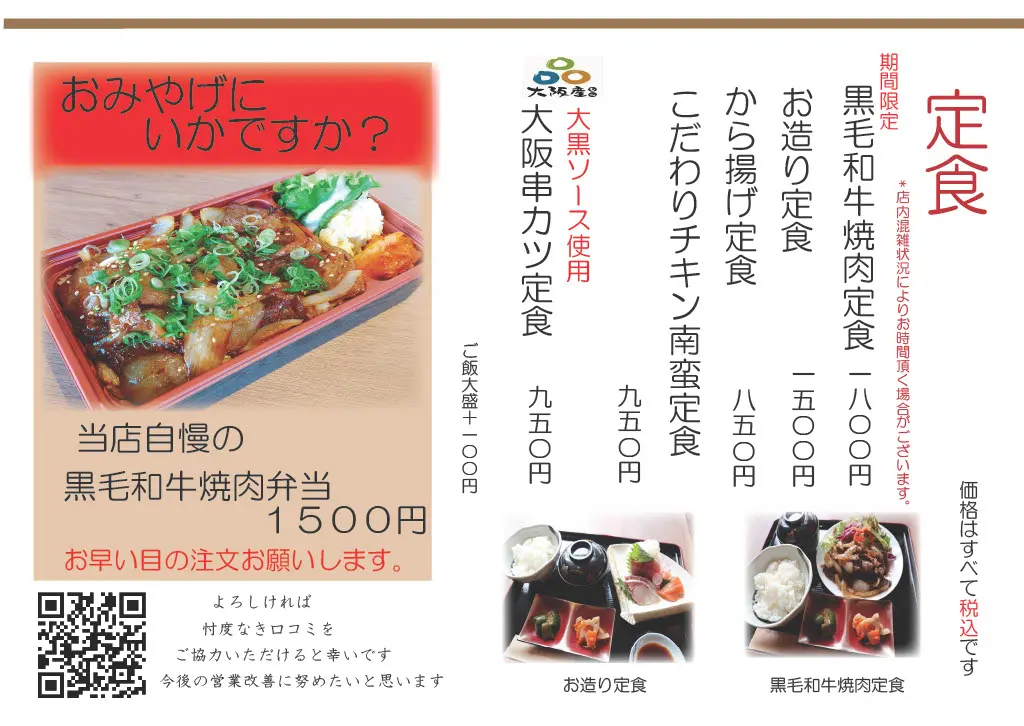 定食メニュー