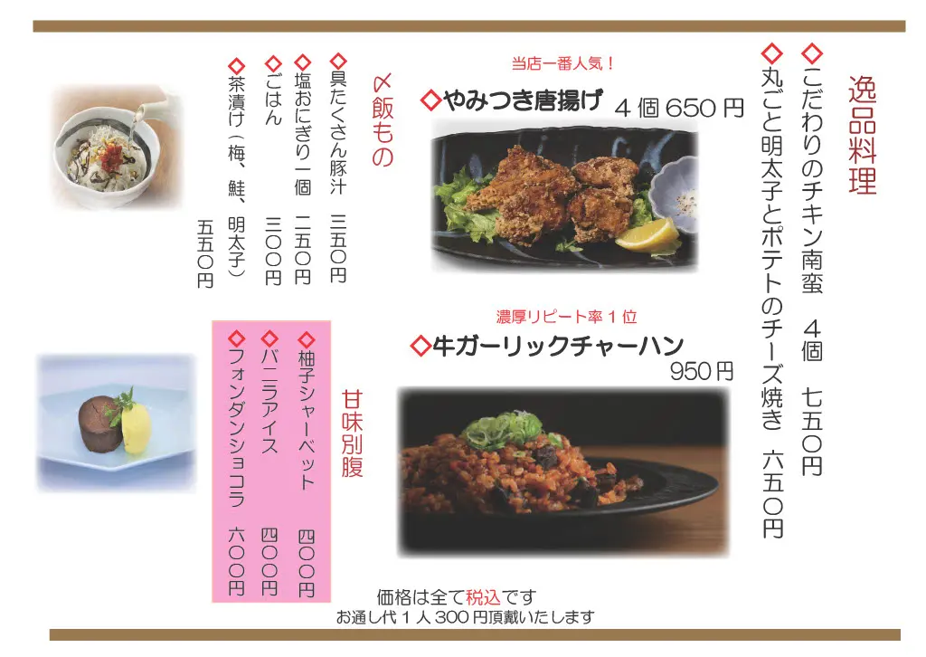 - 6:30〜9:30(ラストオーダー9:00)
