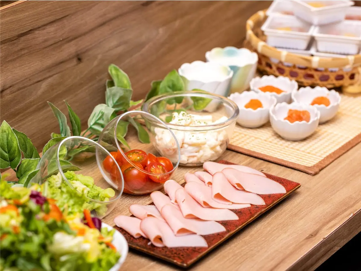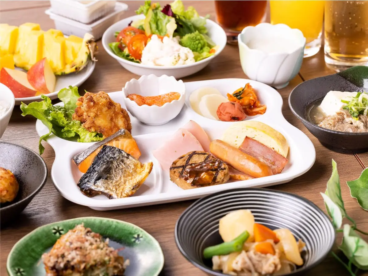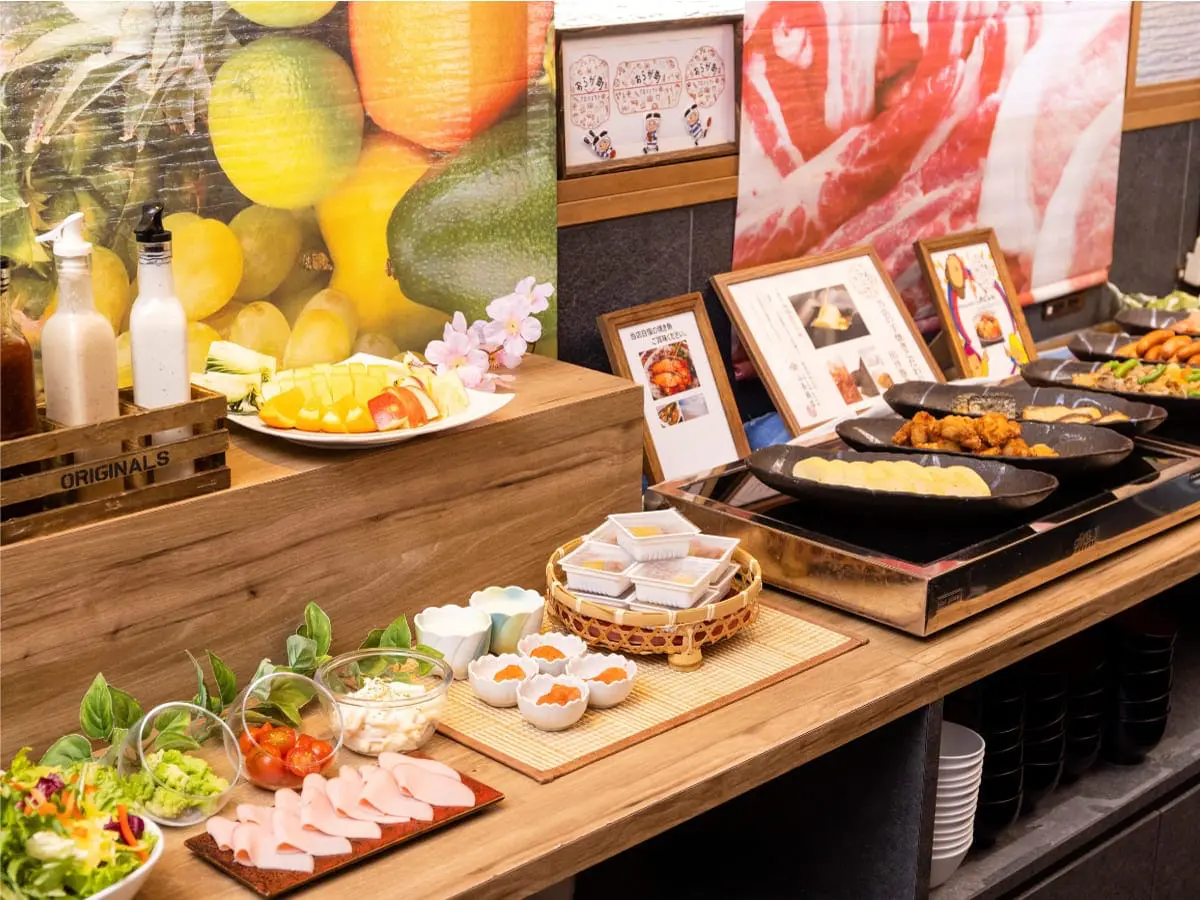 自家製の豚汁・カレー・ごはん・パン・ドリンクなどの定番メニューに加え、出汁たこや関西風手焼きだし巻き、肉吸い、ハリハリ鍋お好み焼き、串カツなどのご当地メニューも充実しております。栄養満点の朝食で気持ちの良い朝をお迎えください!