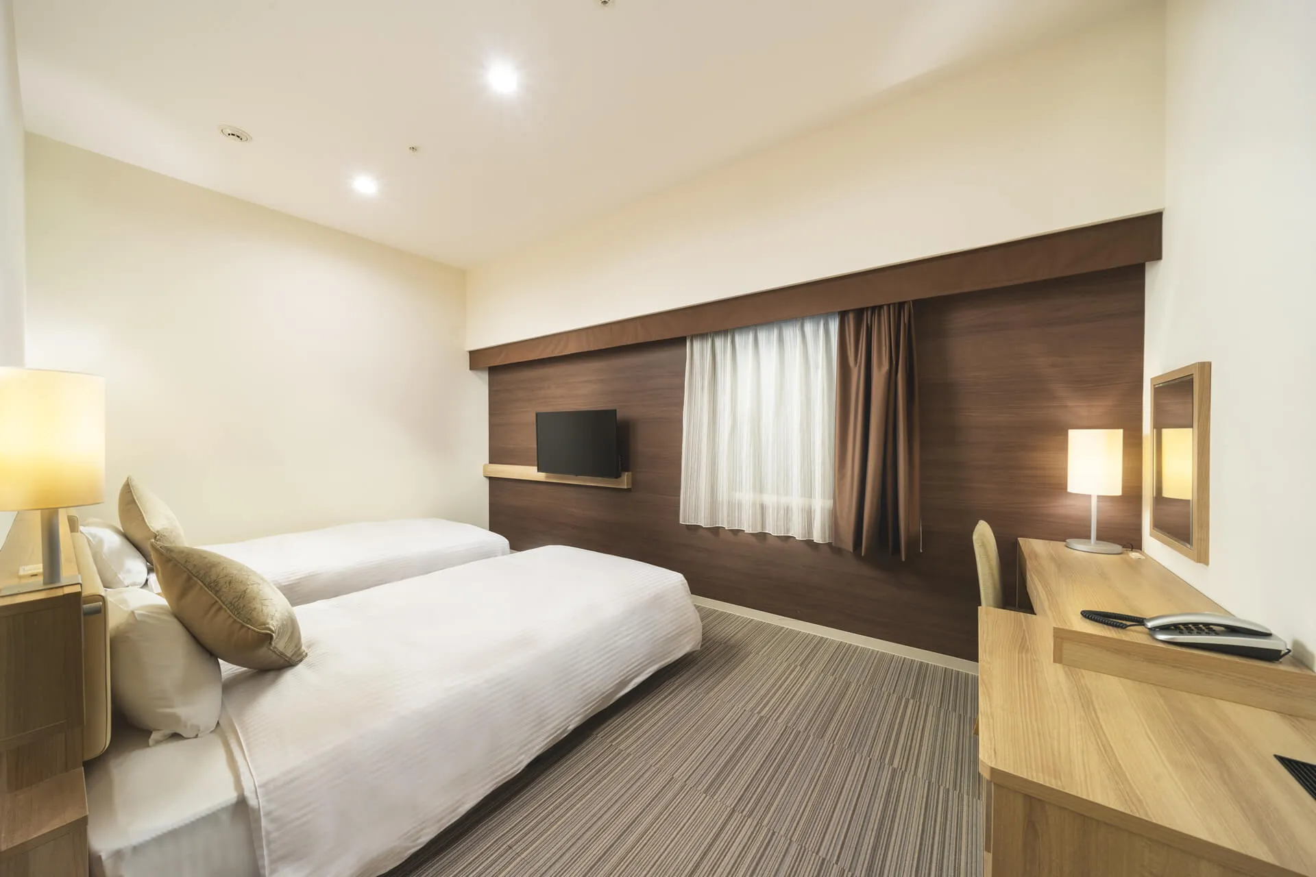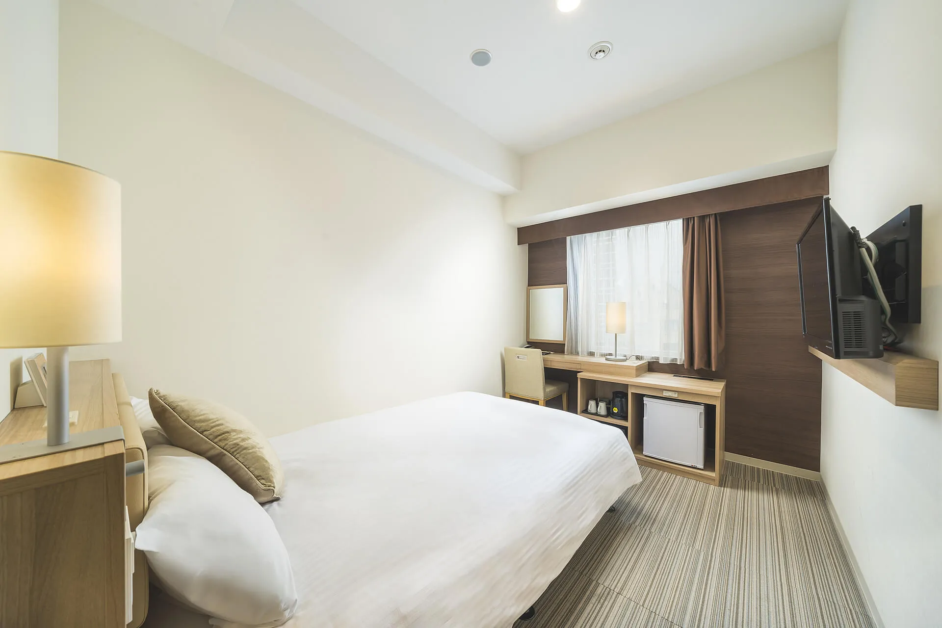 ホテルの客室は、シングル、セミダブル、ツイン、ユニバーサルルームなど、多彩なタイプをご用意しています。全室禁煙で、無料Wi-Fiを完備。シンプルで洗練されたデザインが、旅の疲れを癒し、快適な滞在をサポートします。