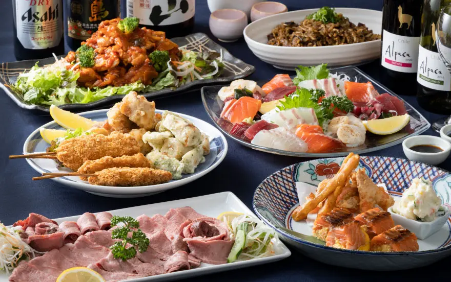 アラカルトメニューもご用意しております。(造り盛り合わせ/ローストビーフ/天ぷら盛り合わせ/サーモン造り)