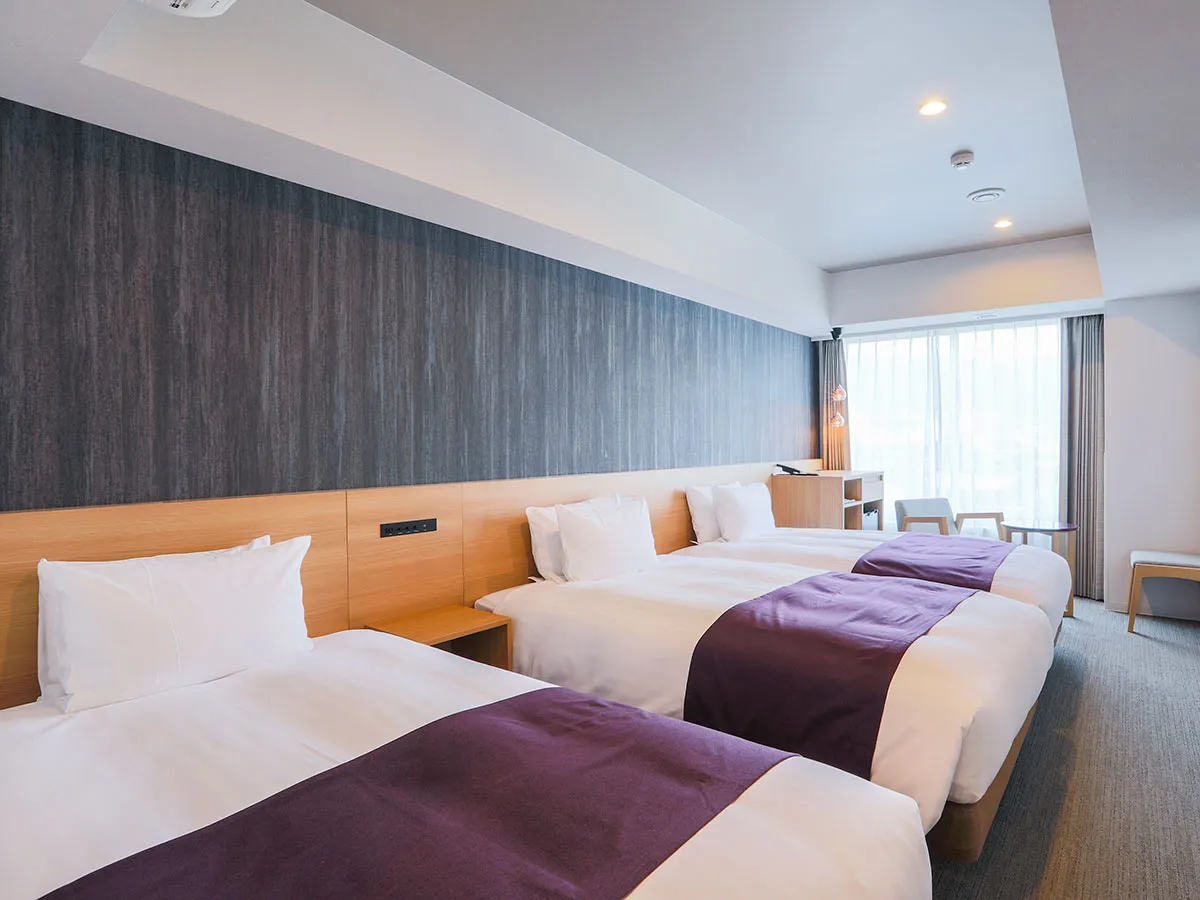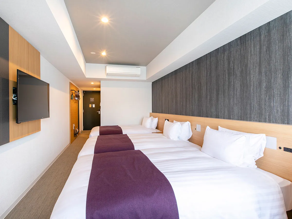 グループやご家族での滞在にも対応しています。すべての客室にお風呂とトイレが独立したタイプを採用しており、禁煙ルーム、ナノイー空気清浄機、無料Wi-Fi、テレビ、冷蔵庫、USBコンセント、電気ポット、ドライヤーなど、快適性を重視した設備が整っています。