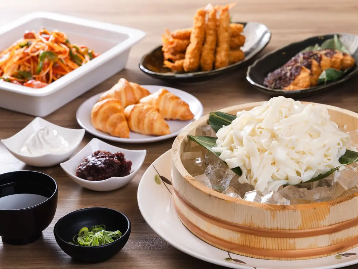 「味噌田楽」や「きしめん」などのご当地グルメを日替わりでご用意しました。
