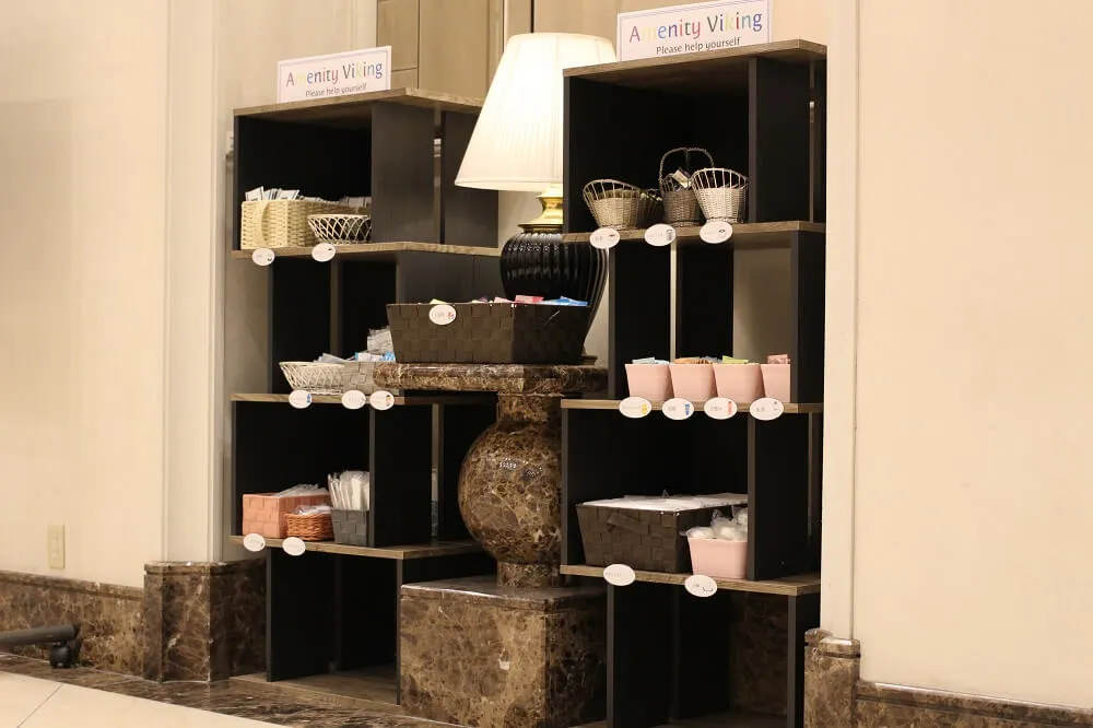 ロビーではアメニティバイキングを提供しており、ヘアブラシ、綿棒、ボディスポンジ、コットン、カミソリ、シェービングクリーム、乳液、化粧水、メイク落とし、洗顔フォーム、入浴剤、お茶、紅茶、コーヒーセットなど、お好みに合わせてお選びいただけます。また、館内には自動販売機(1F/6F)、製氷機(12F)、喫煙所(1F)、コピー・FAX(フロント/有料)などの設備も完備しており、便利なサービスを提供しています。