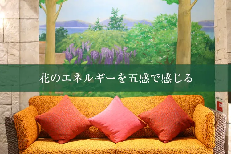 ホテルのエントランス・アプローチを通り抜け、ロビーに入ると印象的な壁画が目に留まり庭園に包まれた都会のオアシスに足を踏み入れた感覚に。その先には、薔薇・藤・桜・ラベンダー・ハイビスカスなど、12種類の花を散りばめた客室フロアが広がります。