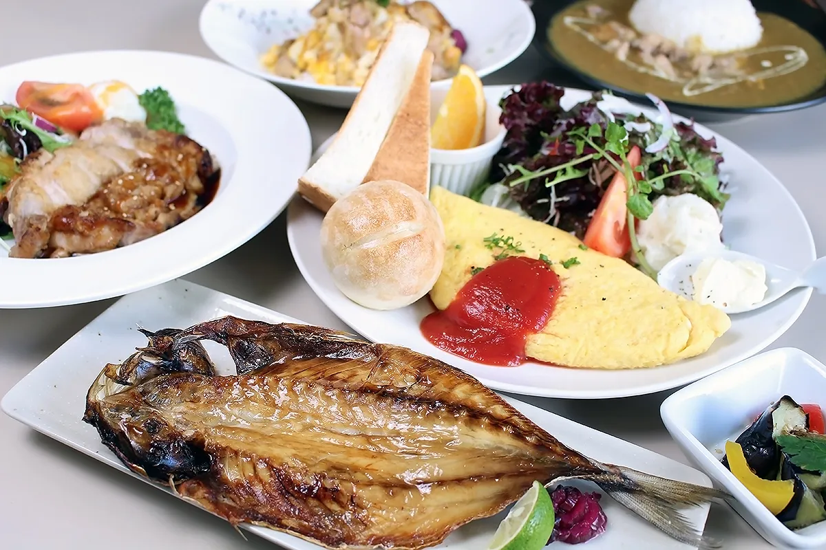1階レストラン「Trattoria SUOLO」では、和洋折衷の朝食を提供しています。地元沼津産の食材を活かした多彩なメニューが揃っており、アジの開き定食やバター控えめのチキンカレー、3種類から選べる卵料理(オムレツ、ベーコンエッグ、ハムエッグ)など、バリエーション豊かに楽しめます。ご飯はおかわり自由、パンも食べ放題で、明るい空間でゆったりとした朝の時間を過ごせます。朝食は6:30~9:30(ラストオーダー9:00)で提供されます。