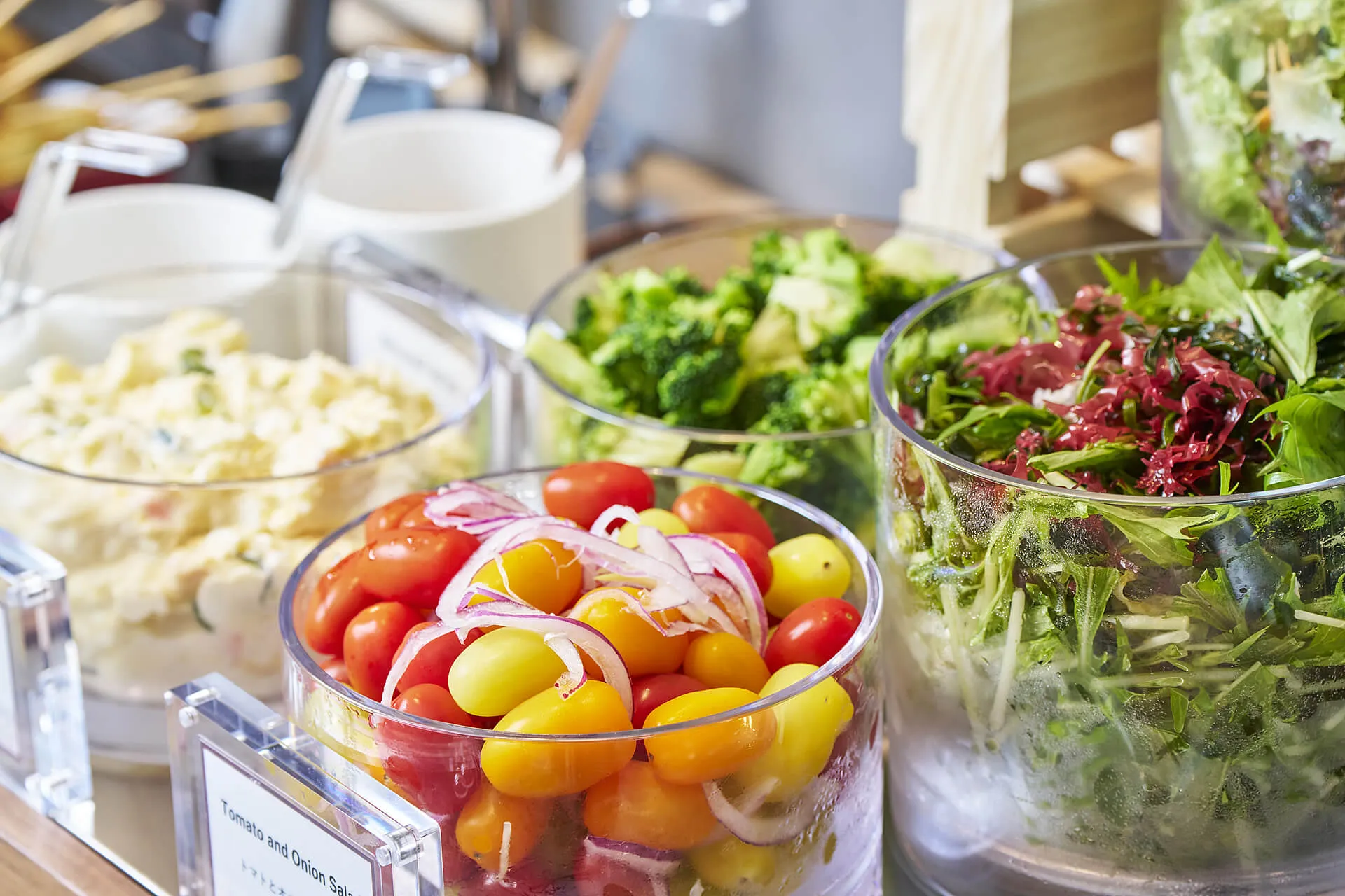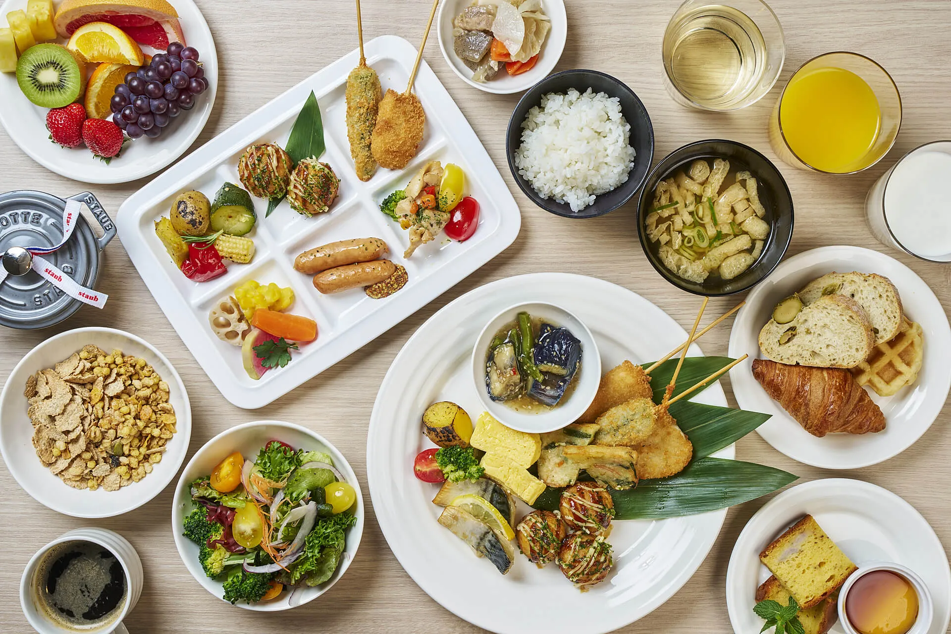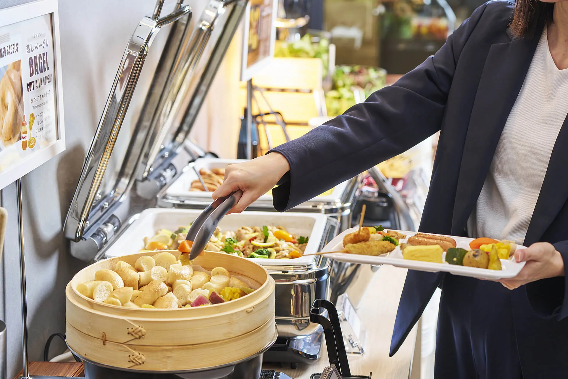 朝食は、和洋のカフェスタイルでご用意しています。焼きたてのパンやふんわり卵料理、新鮮なサラダや季節のフルーツなど、バランスの取れたメニューが揃い、一日のスタートを元気に、そして豊かに彩ります。コーヒーや紅茶などのドリンクも自由に選べるので、ゆったりと朝のひとときを楽しめます。一日の始まりに、美味しい朝食を味わえば、その日はきっと笑顔あふれる充実した一日になることでしょう。旅の思い出は「食」からも生まれます。ホテルならではのこだわりの朝食で、心も体も満たされるひとときをお楽しみください。