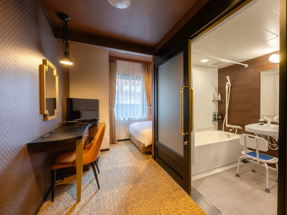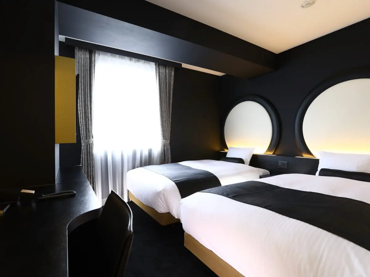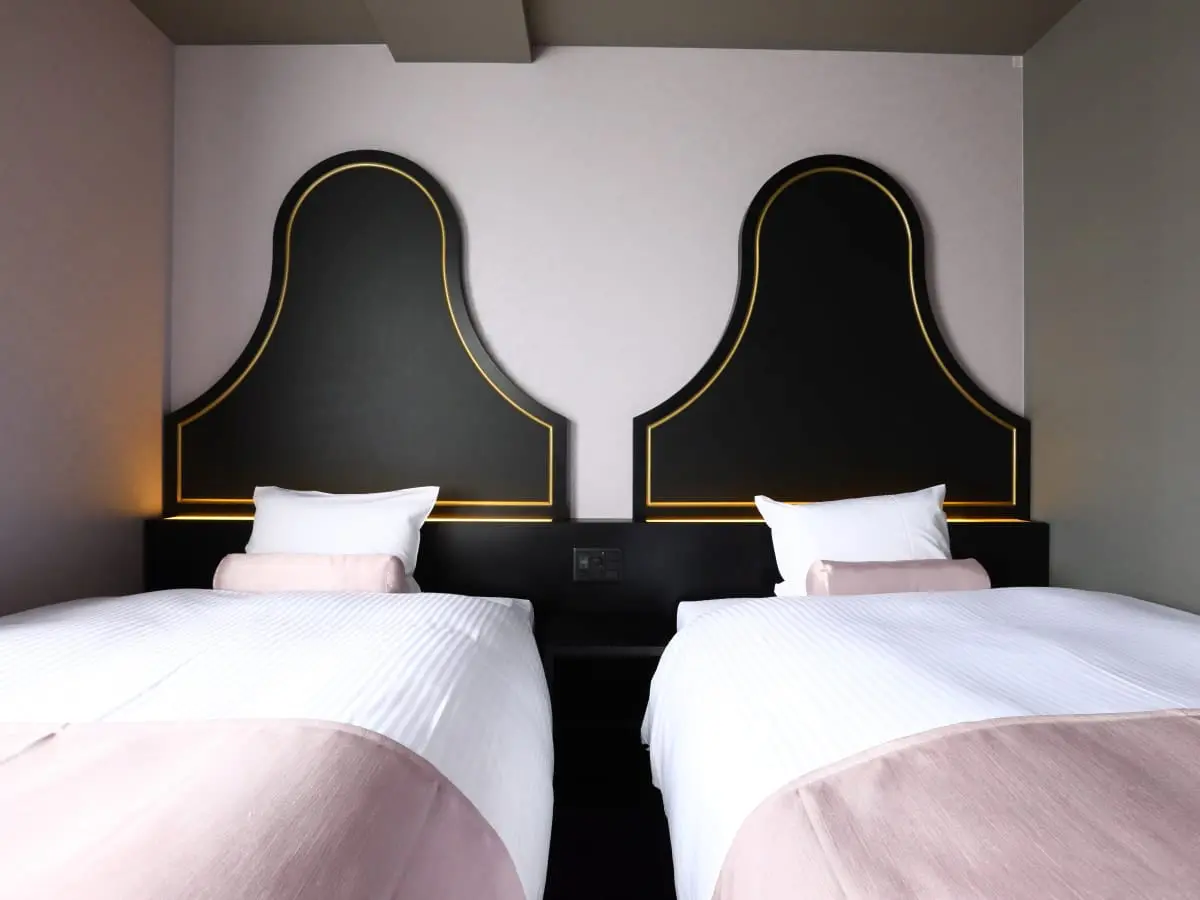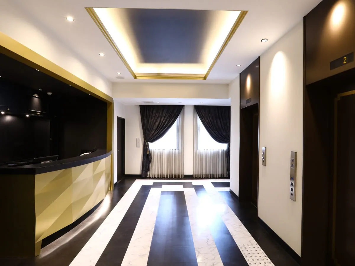 外観や1階サブフロント・ Café&bar『GATSBY』は、ブラックやゴールド・シルバーを基調とした華やかな雰囲気にビジネスホテルとは思えない格調高いインテリアを採用。客室フロアには、小説に登場する6人の人物の名前を付けています。