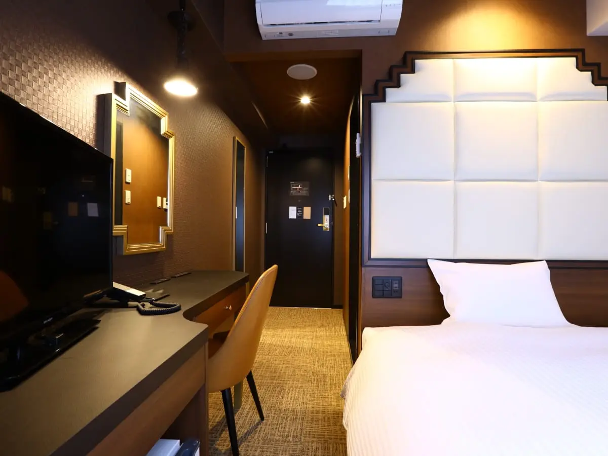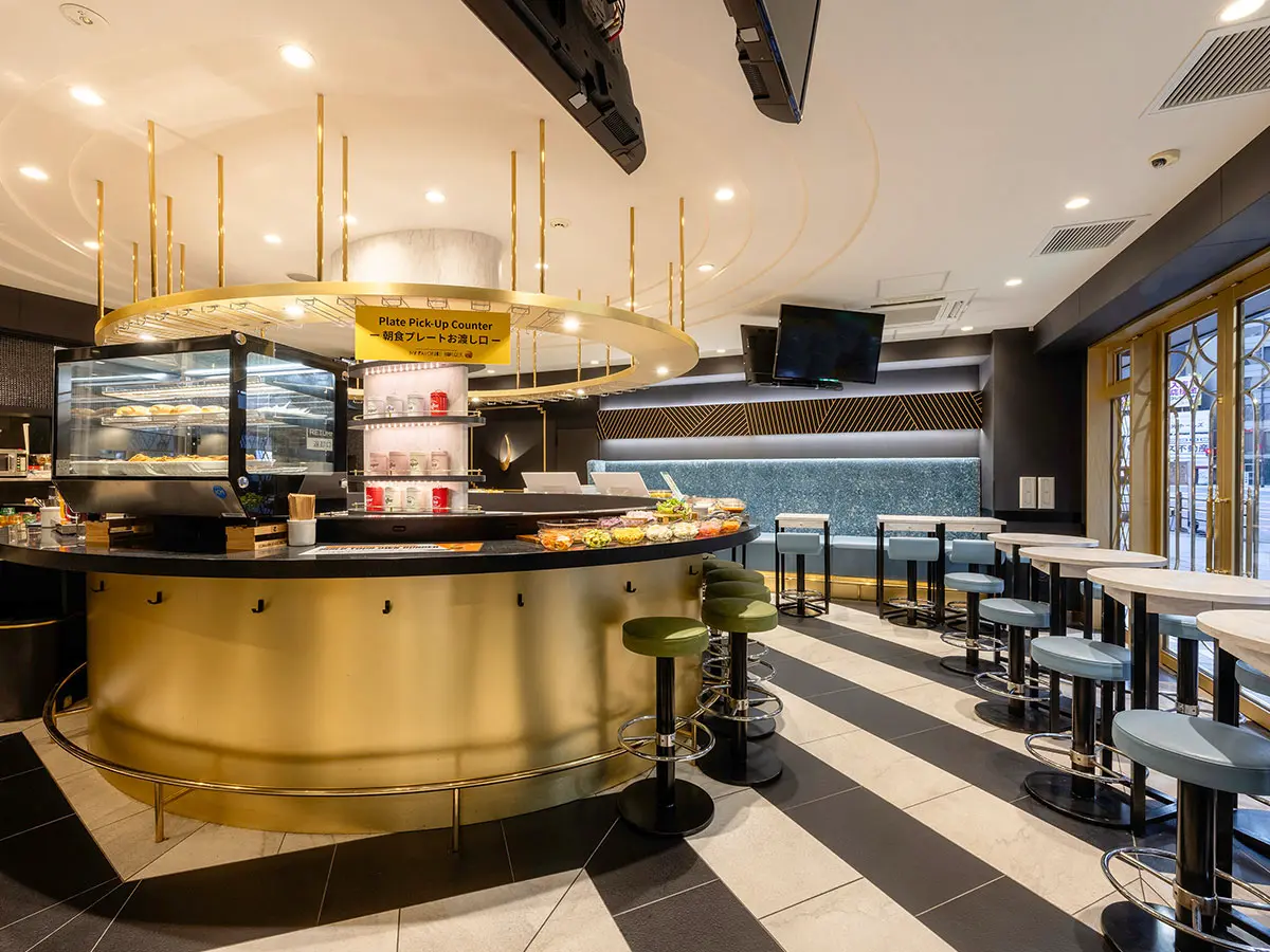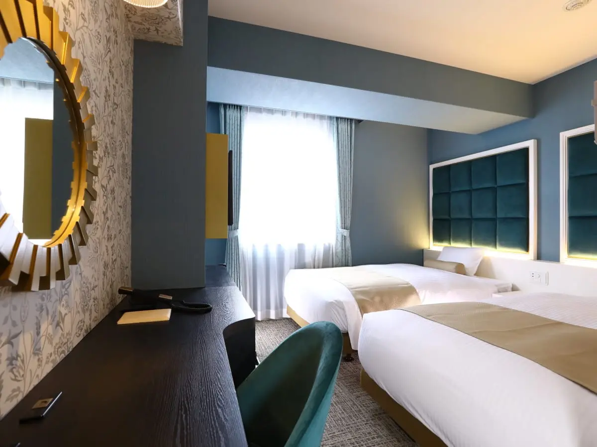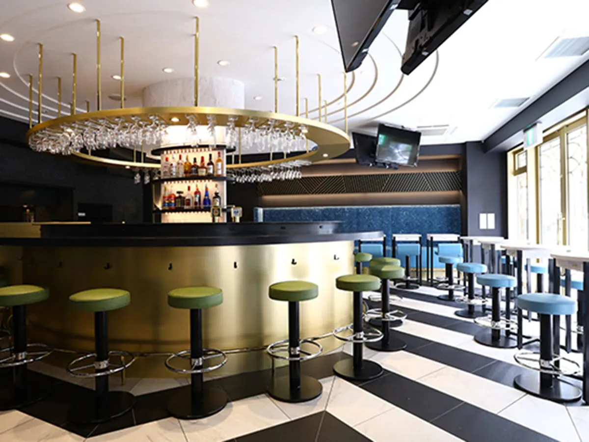 外観や1階サブフロント・ Café&bar『GATSBY』は、ブラックやゴールド・シルバーを基調とした華やかな雰囲気にビジネスホテルとは思えない格調高いインテリアを採用。客室フロアには、小説に登場する6人の人物の名前を付けています。