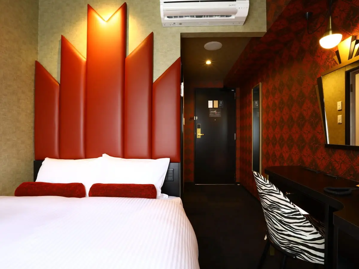 - ヘッドボードのデザインやゼブラ柄の椅子など、個性の強いデザイン。