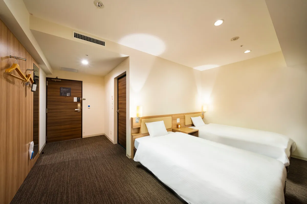 客室はシンプルで落ち着いたデザインが特徴で、訪れる人に安らぎを提供します。シモンズ製のベッドを採用し、質の高い睡眠環境を整えています。全室に無料Wi-Fiを完備しており、ビジネスでの作業やオンライン会議も快適に行えます。また、加湿空気清浄機、セーフティボックス、充実したコンセントなど、長期滞在にも便利な設備が整っています。落ち着いた色調と間接照明が、居心地の良い空間を演出します。 -