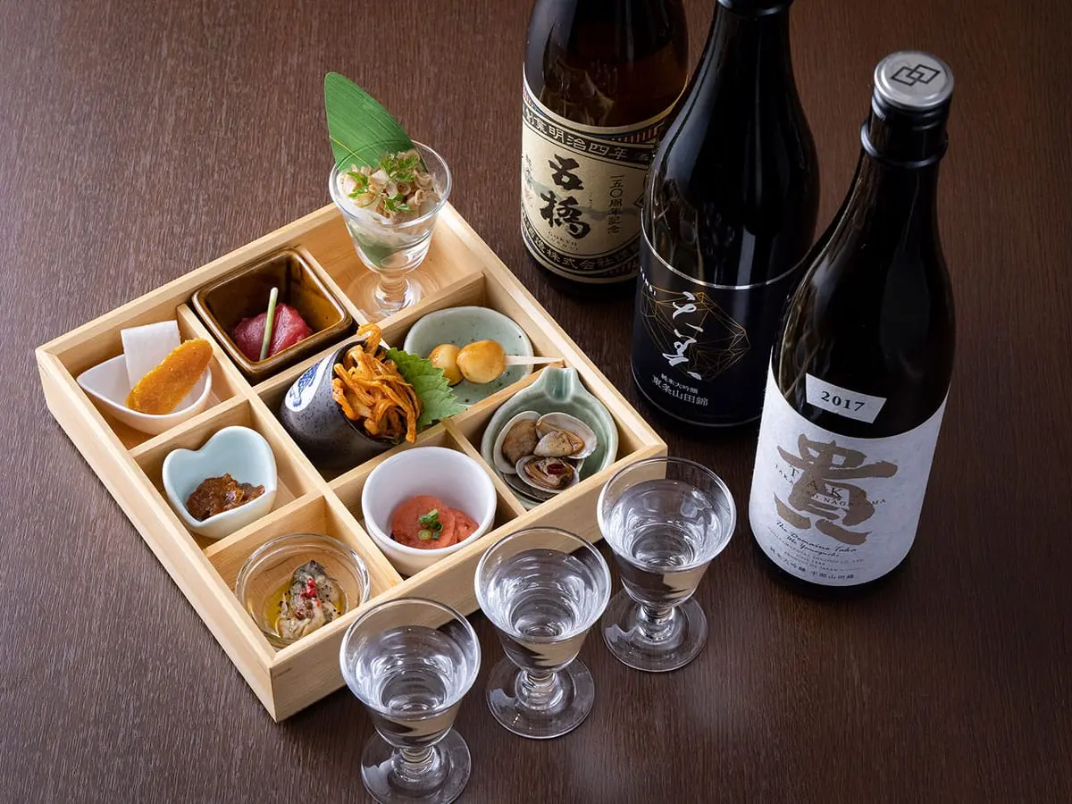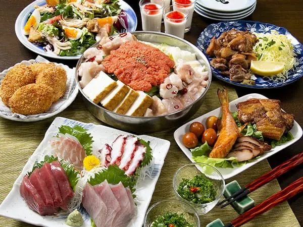 地産地消をテーマに「ふぐ」はもちろん下関ならではの豊かな食材で、一品料理コース料理お1人様での夕食メニューも充実しております。「五橋」「貴」「東洋美人」「天美」をはじめ山口県の誇る地酒を厳選し、日々30種類前後取り揃えております。毎日の様に入れ替わるお料理と地酒。一期一会のお食事と、おもてなしをご堪能下さい。