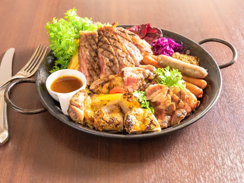 - 牛、豚、2種のステーキ肉が100分食べ放題