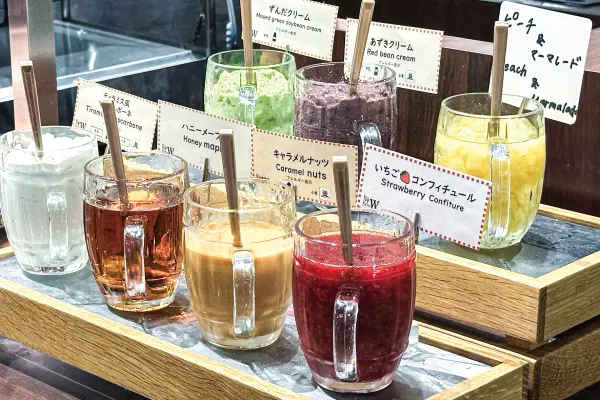 ソースも全てオリジナル。酸味の効いたベリーやママレードから、甘々でとろけるキャラメルナッツ。イタリアからはティラミス風マスカルポーネなど、全てシェフの自信作。熱々に熱したフライパンのままお出ししますので、そのままソースをかけてジュワジュワしたままお召し上がりください。幸せが口いっぱいに広がります。