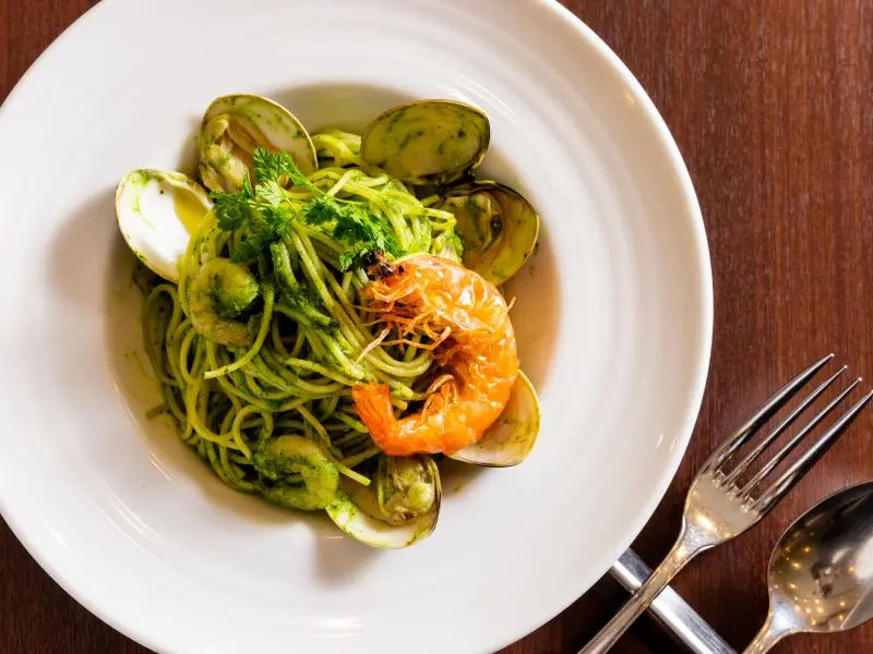 大海老を大胆に乗せた海鮮エキスがたっぷりのジェノベーゼ
