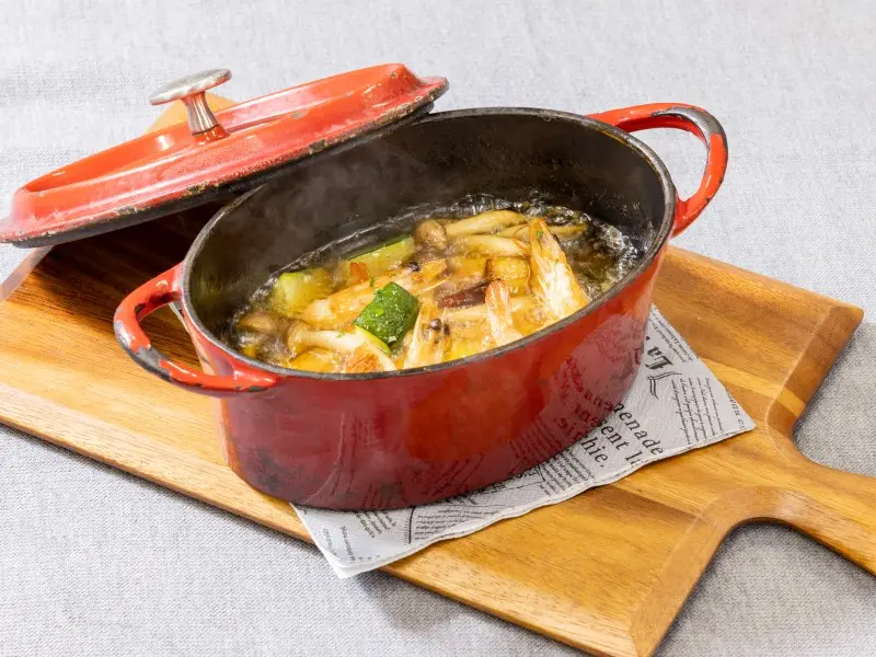 熱々なオリーブの海で鮮度抜群な海老が躍ってます