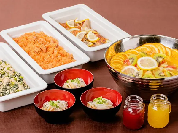 朝食は6:30~9:30(ラストオーダー9:00)に提供され、地元・讃岐の素材を活かしたご当地メニューが並びます。セルフうどんコーナー、讃岐おでんコーナーのほか、パンやサラダ、ご飯のお供などバランスの取れた内容です。料金は通常1,500円(税込)。瀬戸内の朝の空気とともに、一日の始まりを心地よく迎えるひとときです。