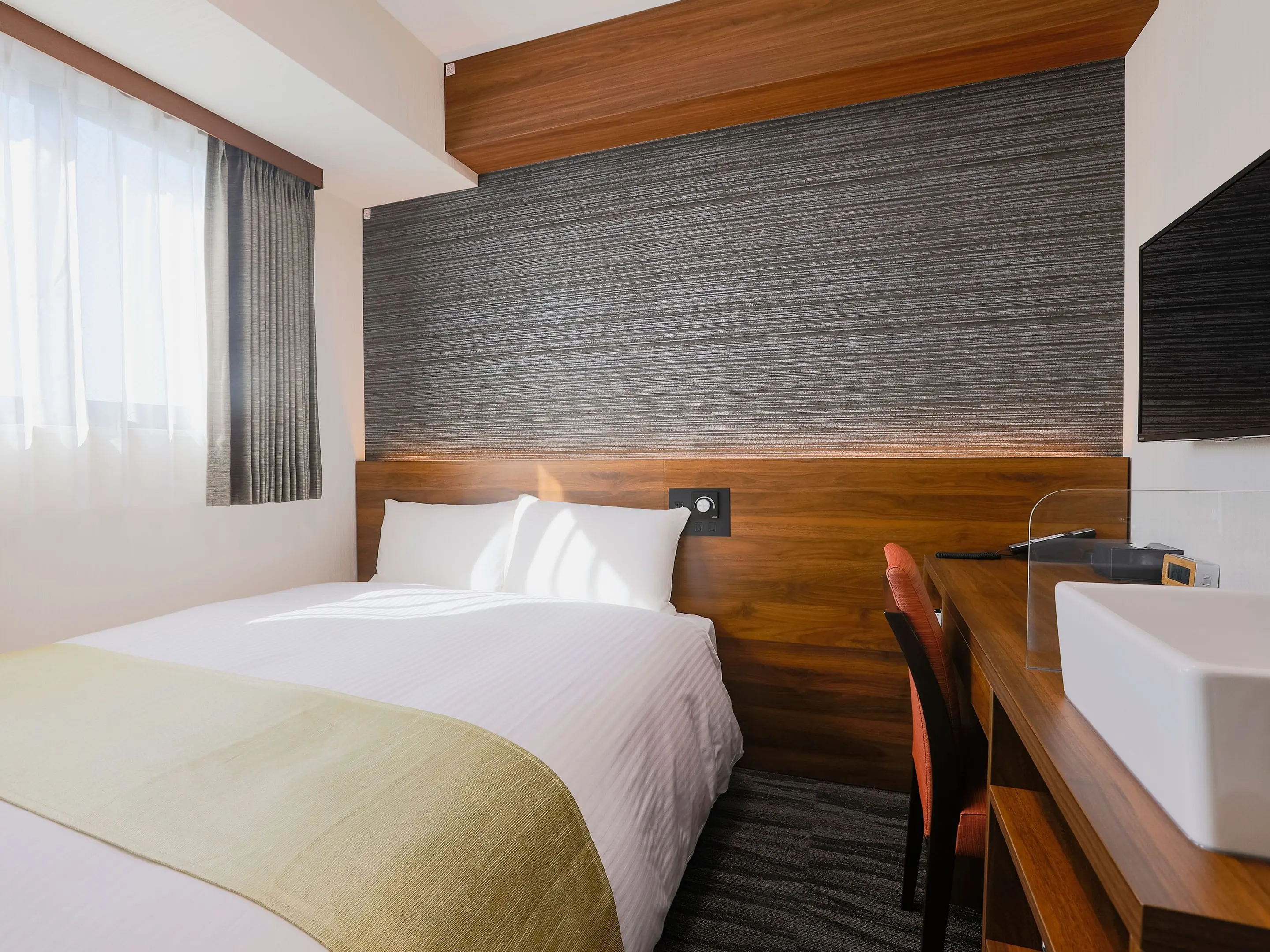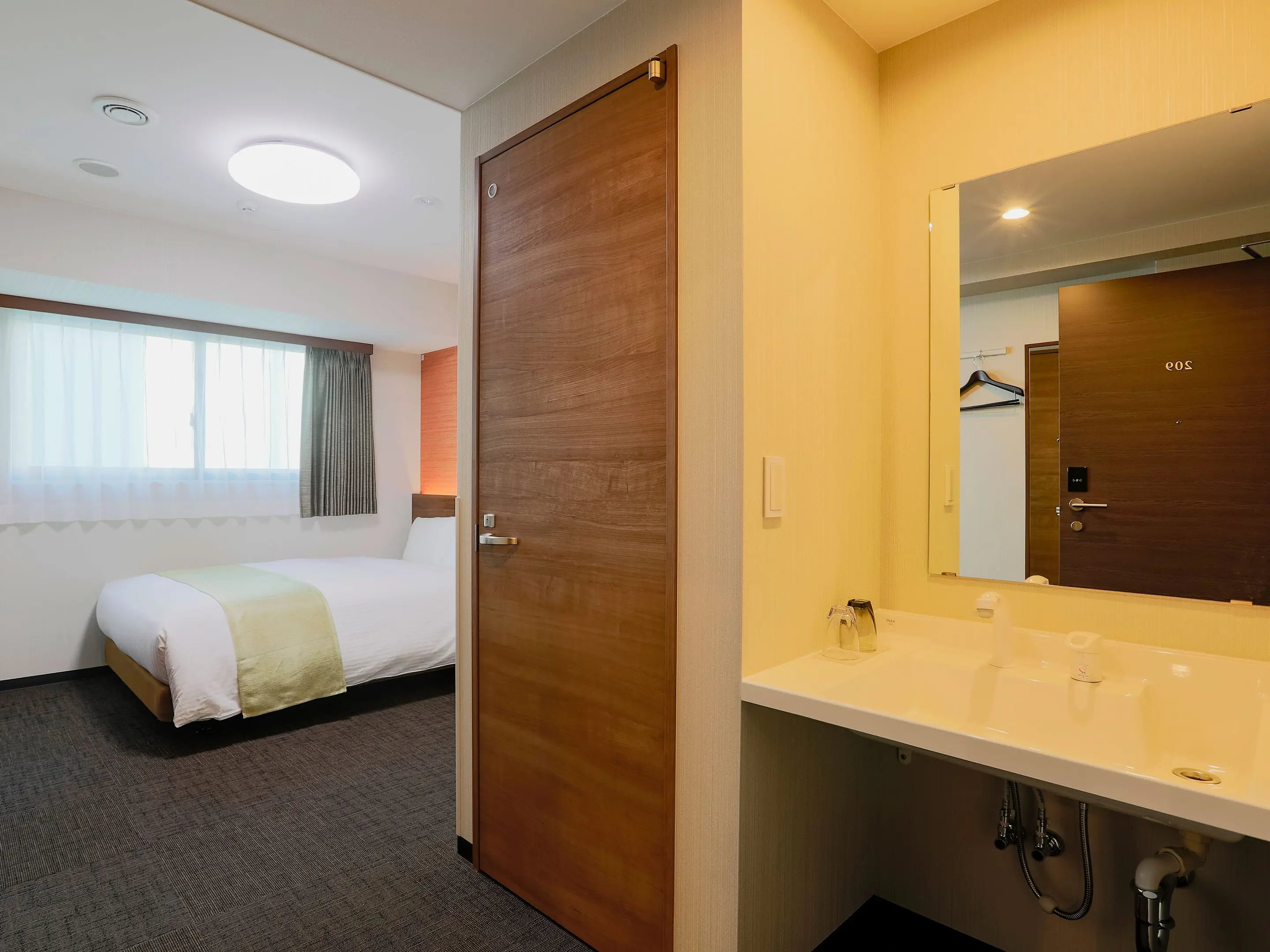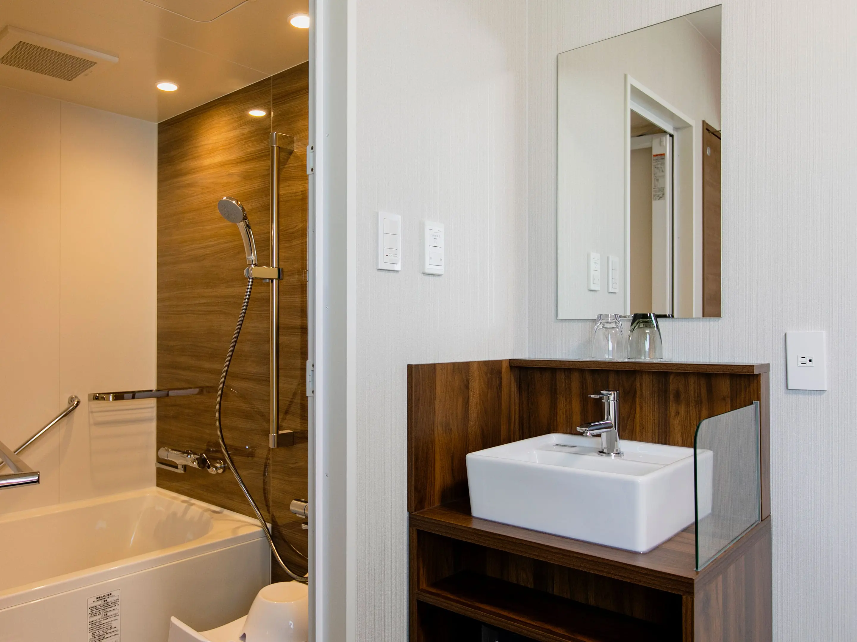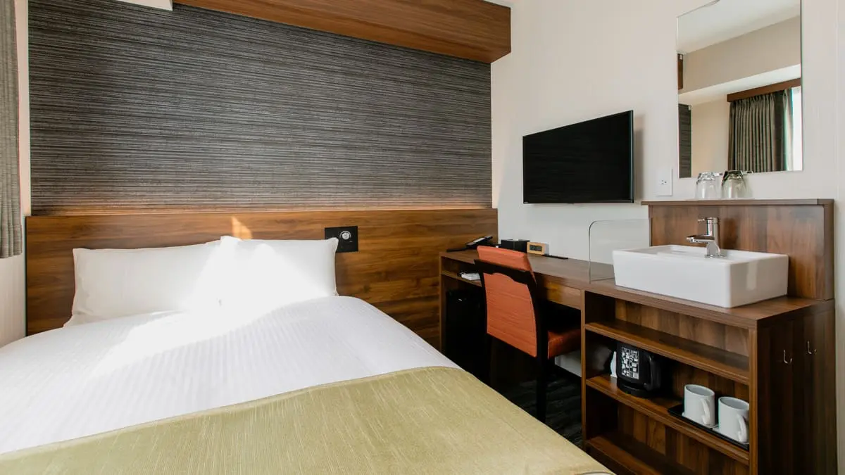すべての客室は禁煙で、バス・トイレ・洗面台が独立しており、ナノイー空気清浄機、無料Wi-Fi、テレビ、冷蔵庫、USBコンセント、電気ポット、ドライヤーなど、快適性を備えた設備が整っています。シンプルでありながら木の質感を活かしたインテリアが、旅の疲れをやさしく癒してくれます。
